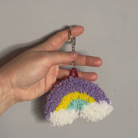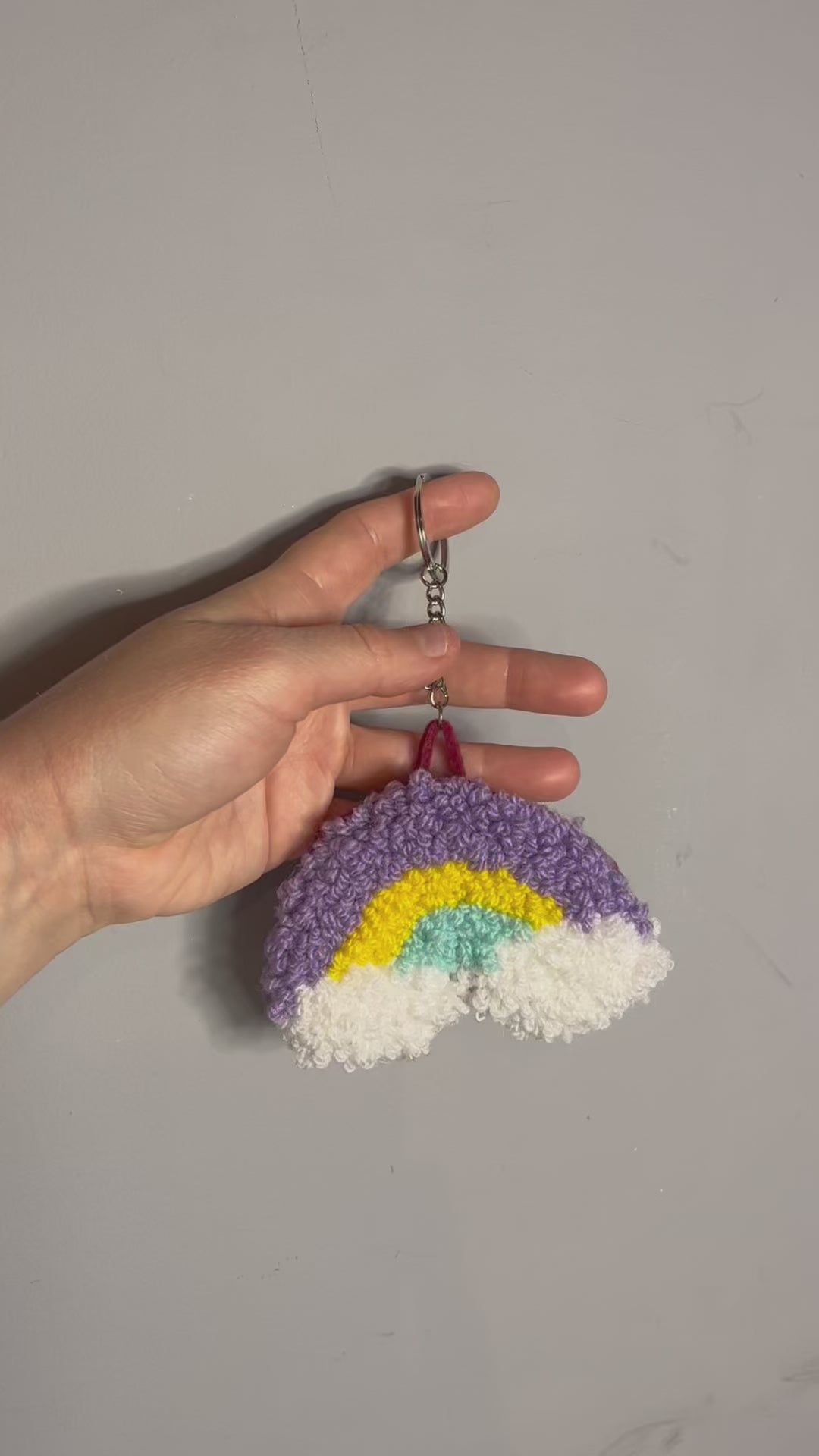 Carry a little color wherever you go. This handmade punch-needled rainbow keychain is soft, cheerful, and full of texture — the perfect small accessory to brighten your keys, bag, or backpack.