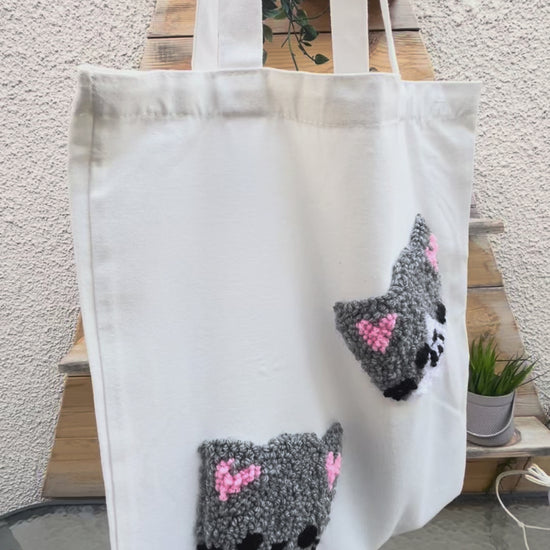 Carry a little joy everywhere you go with this hand-punch-needled tote bag featuring two adorable cats. Soft, textured, and full of personality, each bag is crafted with care for a cozy, handmade feel. Perfect for daily errands, books, or your favorite essentials—this tote is as practical as it is charming. 😻👜